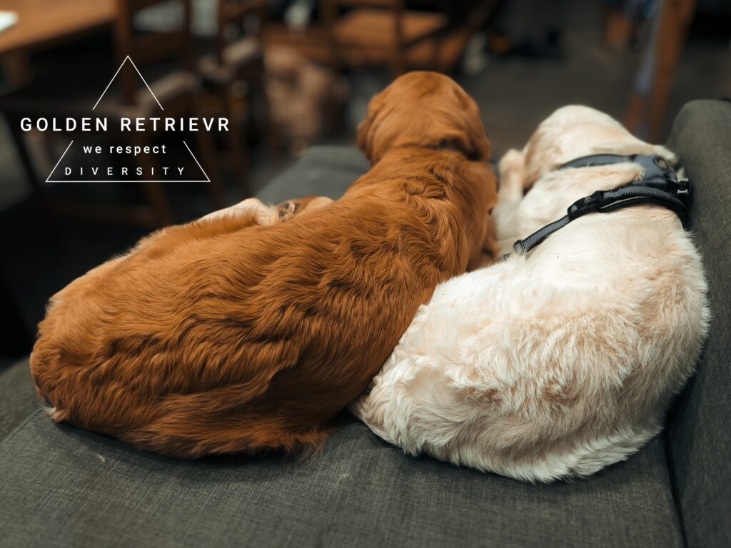 そのために弊舎が実践しているのが、全く異なる「遺伝子プール」を持つ親犬同士の組み合わせによる交配です。現在、日本国内や北米で主流となっている華やかな「アメリカン血統」(ゴールド被毛のいわゆるアメリカンゴールデン)の母犬4頭に加え、遠くポーランドから輸入した「ヨーロピアン血統」(クリーム被毛のいわゆるイングリッシュゴールデン)の父犬1頭と母犬2頭を飼養しています。さらに、このヨーロピアンゴールデン自体も、ウクライナやベラルーシ、ロシアといったそれぞれ異なる東欧の強健な犬舎の流れを汲んでおり、アメリカンタイプのゴールデンも日本国内の遠く離れた犬舎にルーツをもつ血統で、全ての親犬たちは遺伝的な背景が大きく異なります。