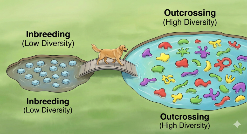 近親交配(インブリード)を避け、異なる遺伝子プールに属する親犬同士で交配を行うこと。これにより、特定の「弱さ」や「疾患リスク」が濃縮されるのを防ぎ、犬が本来持っている免疫力や生命力を底上げする。これこそが、がん発症の先天的なリスクを下げるための、ブリーダーの最も重要な責任です。